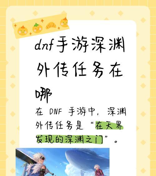 《地下城与勇士》(DNF)是一款热门的多人在线角色扮演游戏,游戏中的主线任务是玩家探索迷失大陆、解开秘密的重要一环。掌握主线任务攻略,不仅可以提升游戏体验,还能快速升级、获得丰厚奖励。本文将为大家详细介绍DNF主线任务攻略,帮助你成为任务达人。